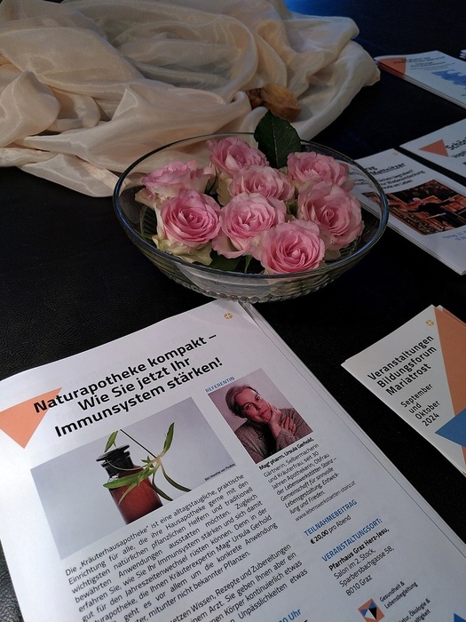 Unter dem Titel „Naturapotheke kompakt“ vermittelt die Pharmazeutin und Kräuterexpertin Maga Ursula Gerhold seit Jahren im Salon der Pfarre Herz-Jesu alltagstaugliche, praktische Möglichkeiten, das Immunsystem zu stärken und sich somit gut für die jeweilige Jahreszeit zu rüsten.