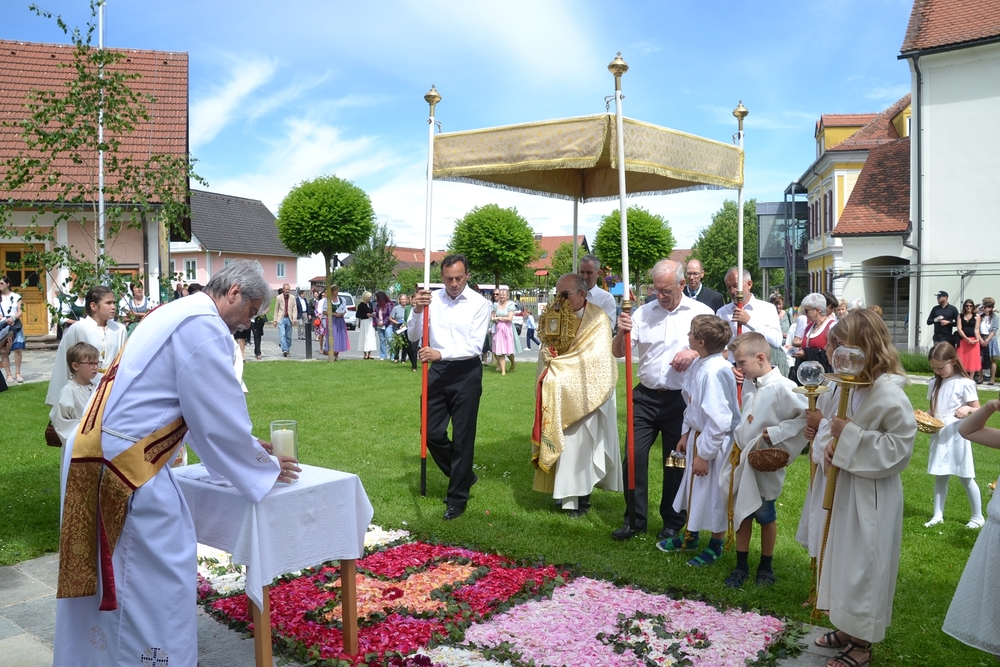 Die Festmesse mit Vikar Gerhard Hatzmann und den Diakonen Franz und Wolfgang wurde musikalisch vom Vokalensemble der Pfarre Gleisdorf gestaltet. (Missa fantastica – Komposition & Leitung: Maria Suntinger; Orgel: Magdalena Moser)