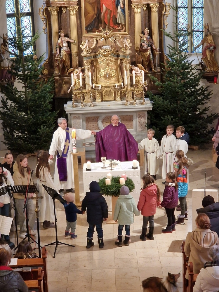 Zelebriert wurde die hl. Messe von Vikar Gerhard Hartmann und Diakon Michi Zepf, der die vielen Kinder zusammen mit den Minis zur Evangeliumsprozession und zum Vater-unser-Kreis einlud – spannende Momente für unsere Kleinen!
